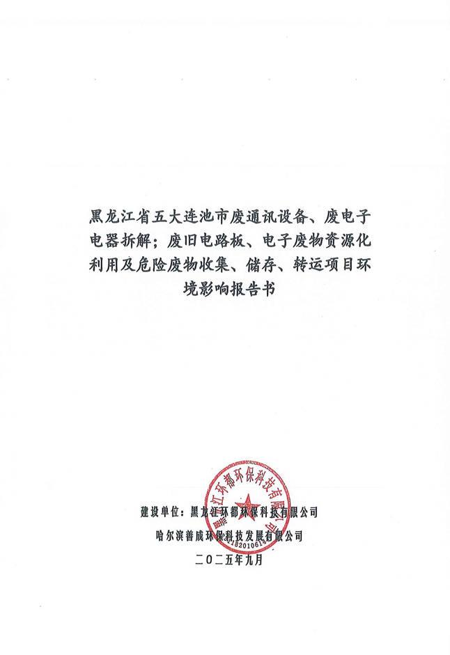 黑龍江省五大連池市廢通訊設(shè)備、廢電子電器拆解;廢舊電路板、電子廢物資源化利用及危險廢物收集、儲存、轉(zhuǎn)運項目環(huán)境影響報告書及公眾參與說明