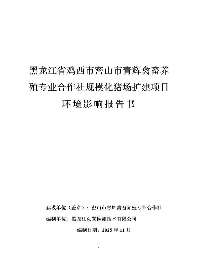 黑龍江省雞西市密山市青輝禽畜養(yǎng)殖專業(yè)合作社規(guī)?;i場(chǎng)擴(kuò)建項(xiàng)目環(huán)境影響報(bào)告書(shū).docx